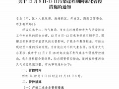 沧州市大气污染防治过程期间强化管控措施通知, 管控时间2021年12月8日-13日