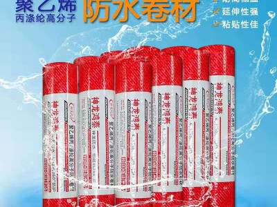 高分子聚乙烯丙(涤)纶防水卷材是采用聚乙烯、高强丙(涤)纶无纺布、紫外线隔光剂、抗老化剂等高分子原料,由自动化生产线一次性挤出成型加工制成。卷材中间层是防水层和防老化层,上下两面是增强粘结层,牢固、可靠、无翘边、无空鼓、双层防水,是一种新型的防水材料。