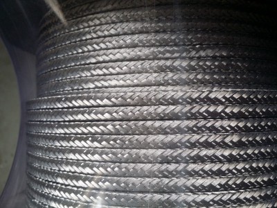 石墨盘根一般采用8、12、16、24、36、48、60等个锭子在三或四个轨道上编织而成,断面呈方形,表面平整,弹性和耐磨性好,强度高,致密性好,与轴接触面比发辫式大且均匀,纤维间空隙小,所以密封性好,表面层磨损后整个填料不会松散,使用寿命长,是一种比较先进的编织结构。