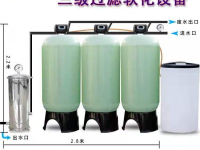 软化水设备是水处理设备中工艺最简单的,主要配置;软化阀头,(自动或手动),树脂罐(玻璃钢或不锈钢),中心管布水器,盐箱。