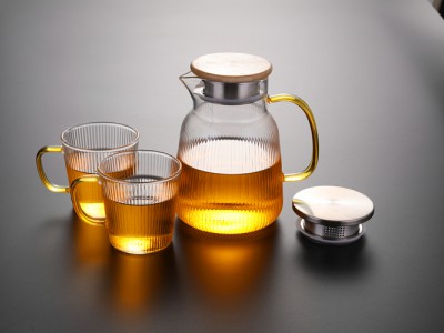 【商品名称】:玻匠人品牌玻璃茶具 冷水壶条纹 玻匠人十大品牌茶具