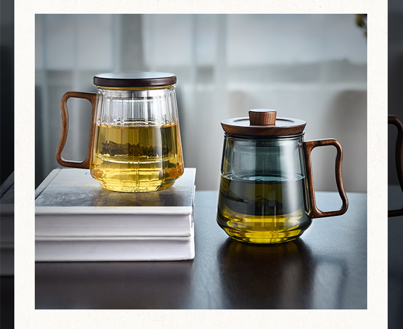 【商品名称】:玻匠人品牌玻璃茶具  透黑木璃玻璃办公三件杯  玻匠人十大品牌茶具