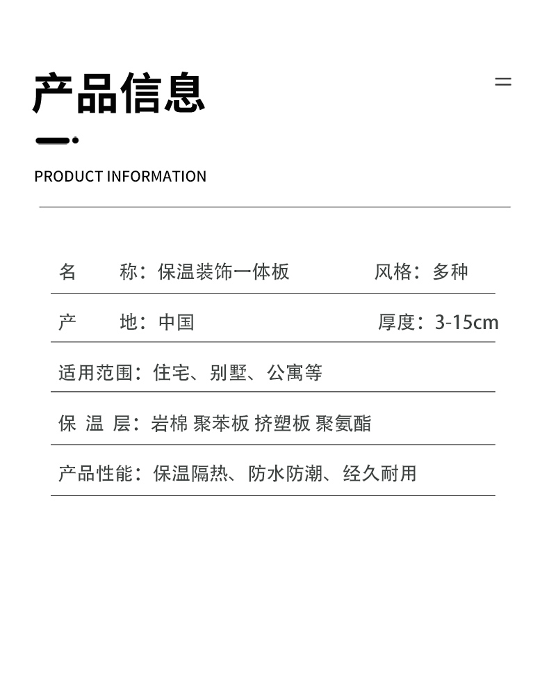 建议您通过拨打保温装饰一体板生产厂家厂家联系方式确认最终价格,并索要保温装饰一体板生产厂家样品确认产品质量。如保温装饰一体板生产厂家报价过低,可能为虚假信息,请确认保温装饰一体板生产厂家报价真实性,谨防上当受骗。
