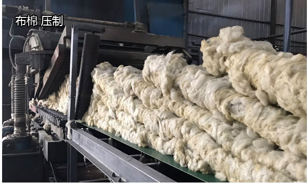 采用国际先进的四辊离线机甩丝形成岩棉纤维,高速鼓风机使其喷吹冷却成型,在喷吹过程中添加一定比例的高效粘合剂,均匀布棉由大型摆锤设备,使其岩棉胶棉呈三维布棉状态,平均分布与履带上。