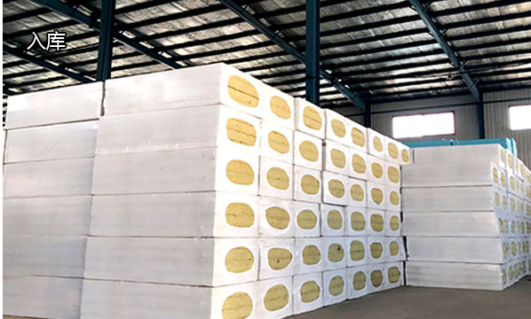 产品切割后经高风吹渣后平行重叠,使其达到包装厚度,经全自动热缩包装机,把岩棉板整体包装,经过热收缩机使包装收缩,冷却后由成品运输车运输至成品库存放。