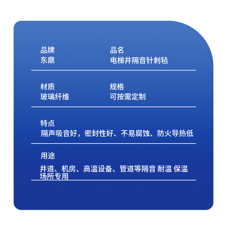本页信息为廊坊东鼎保温材料有限公司为您提供的“电梯井隔音毡 防火玻璃纤维针刺毡 贴铝箔井道吸音毡施工”产品信息,如您想了解更多关于“电梯井隔音毡 防火玻璃纤维针刺毡 贴铝箔井道吸音毡施工”价格、型号、厂家,请联系厂家,或给厂家留言。
